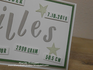 Drei bestickte Sterne in Lindgrün machen die Karte komplett.